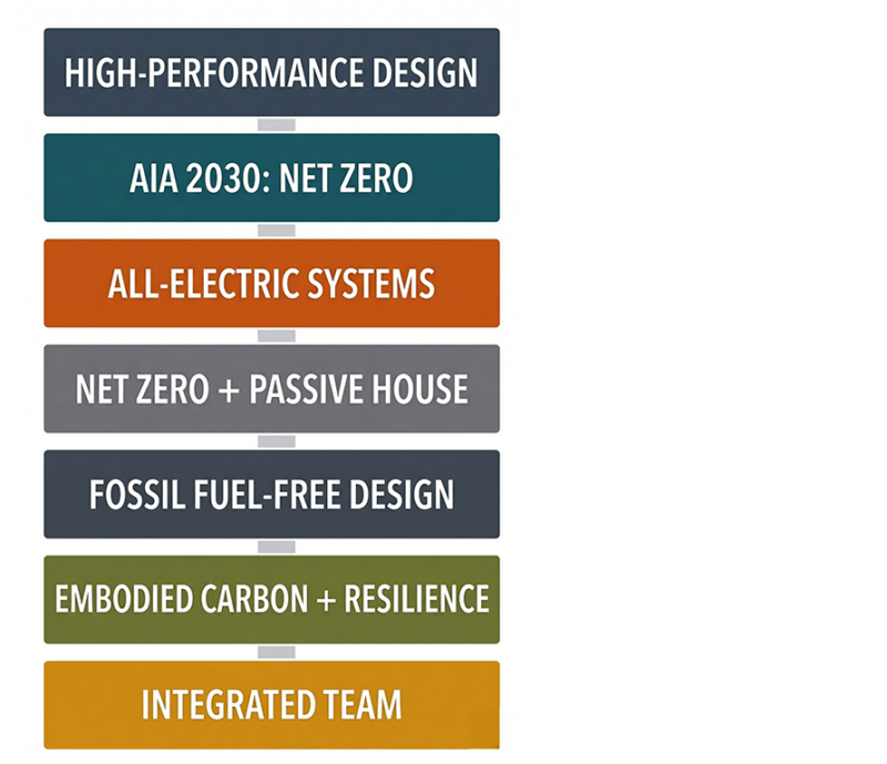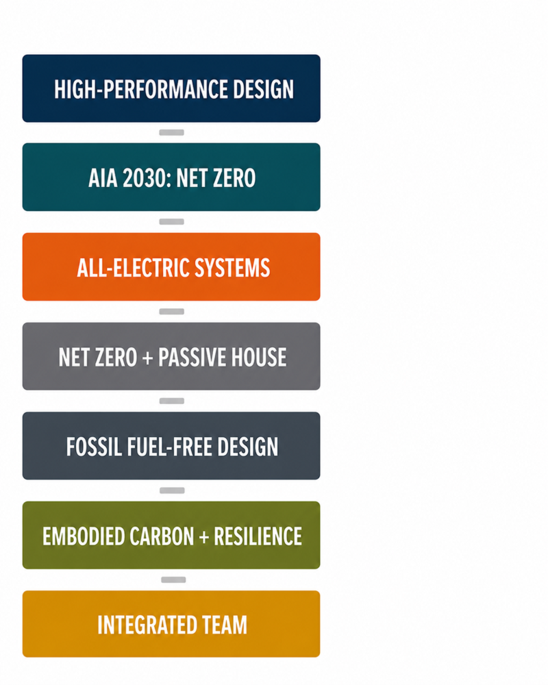 As a proud signatory of the AIA 2030 Commitment, we have moved beyond simple pledges to deliver an actionable climate strategy aimed at reaching net zero emissions. We specialize in fossil fuel-free and all-electric design, proving that high-performance buildings can be beautiful, community-focused and budget-conscious.